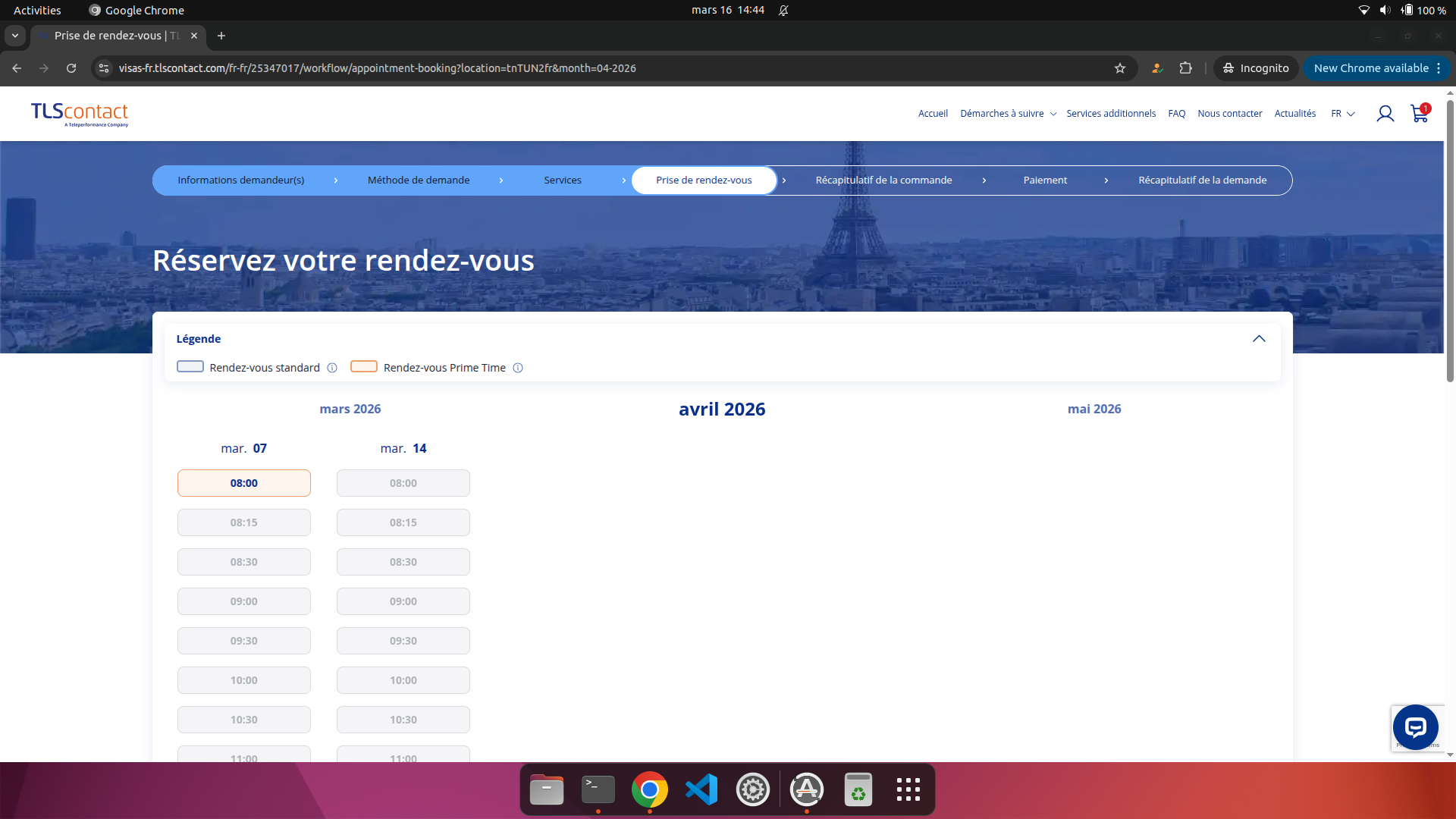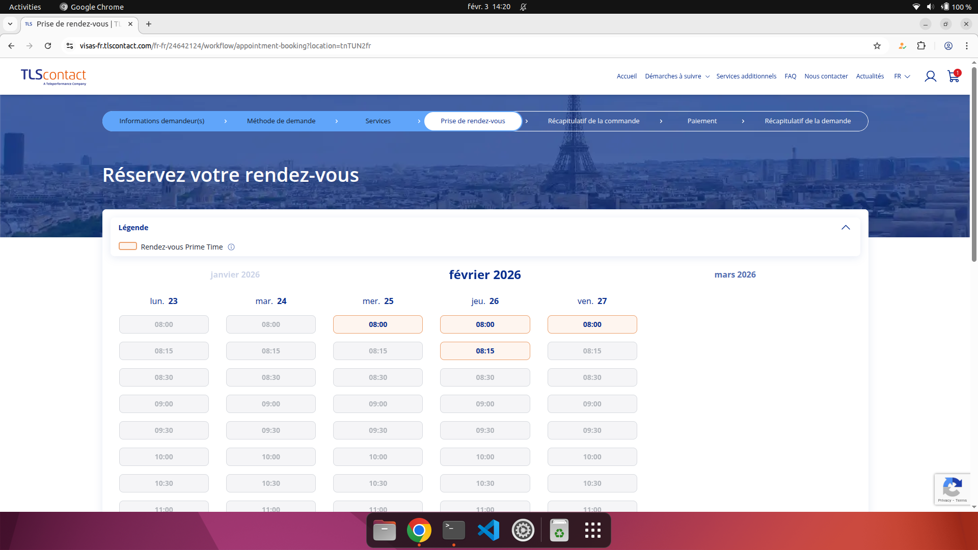 Créez une alerte pour être notifié dès qu'un rendez-vous visa France devient disponible au centre TLS Centre TLS Contact Tunis à Tunis.